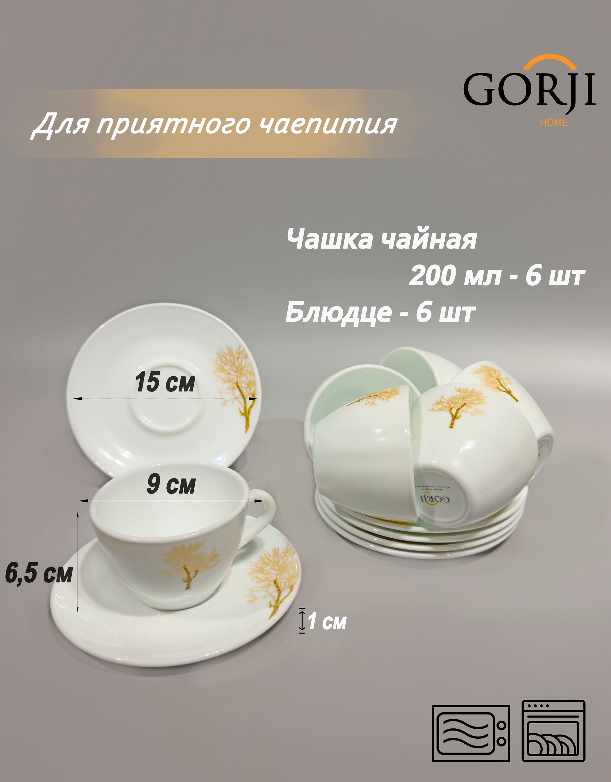 | Шай кеселері | 200 мл / 9 см / 6,5 см | 6 дана |