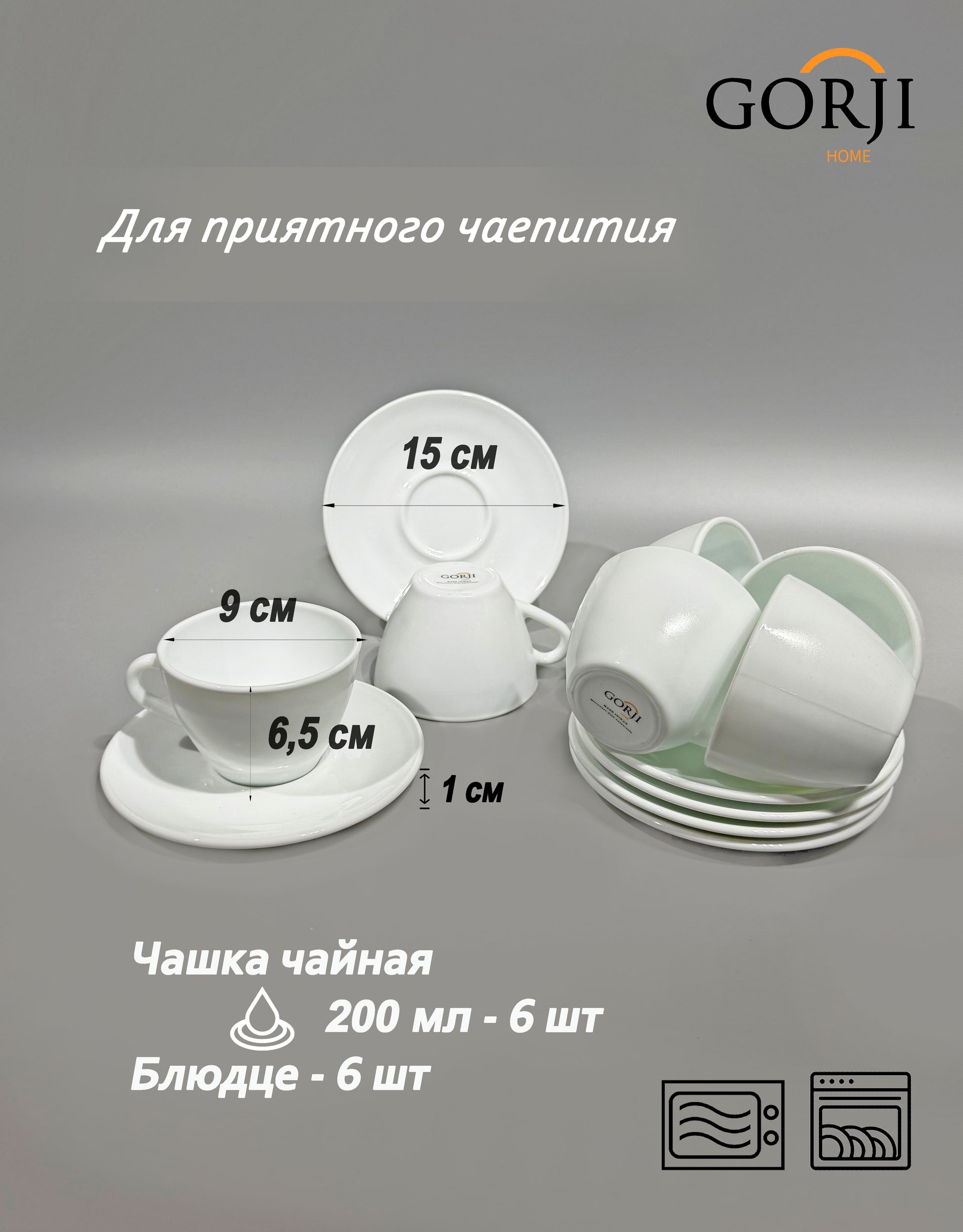 | Шай кеселері | 200 мл / 9 см / 6,5 см | 6 дана |