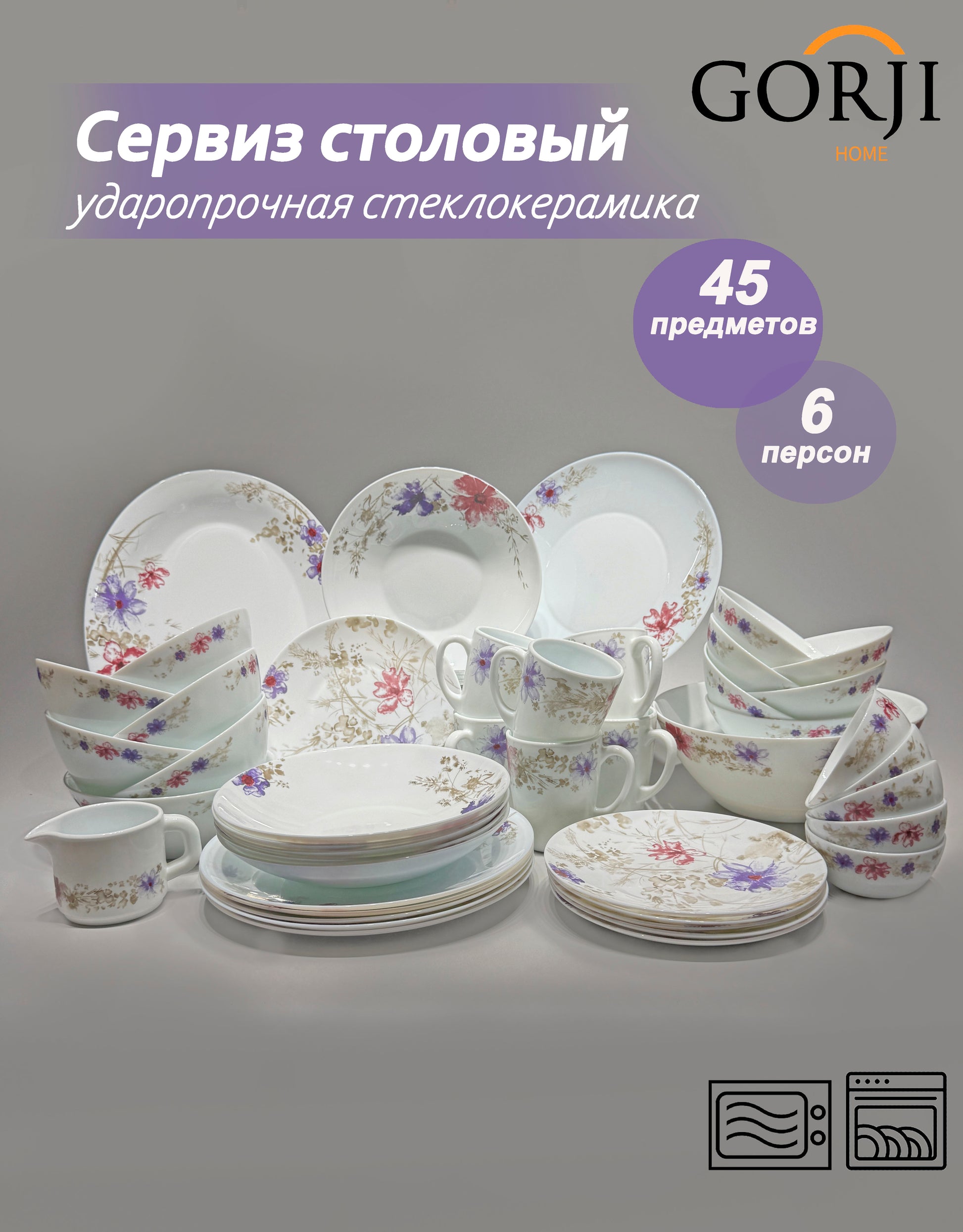 - 6 адамға арналған 45 бөліктен тұратын ас жинағы