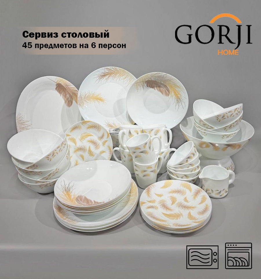 - 6 адамға арналған 45 бөліктен тұратын ас жинағы