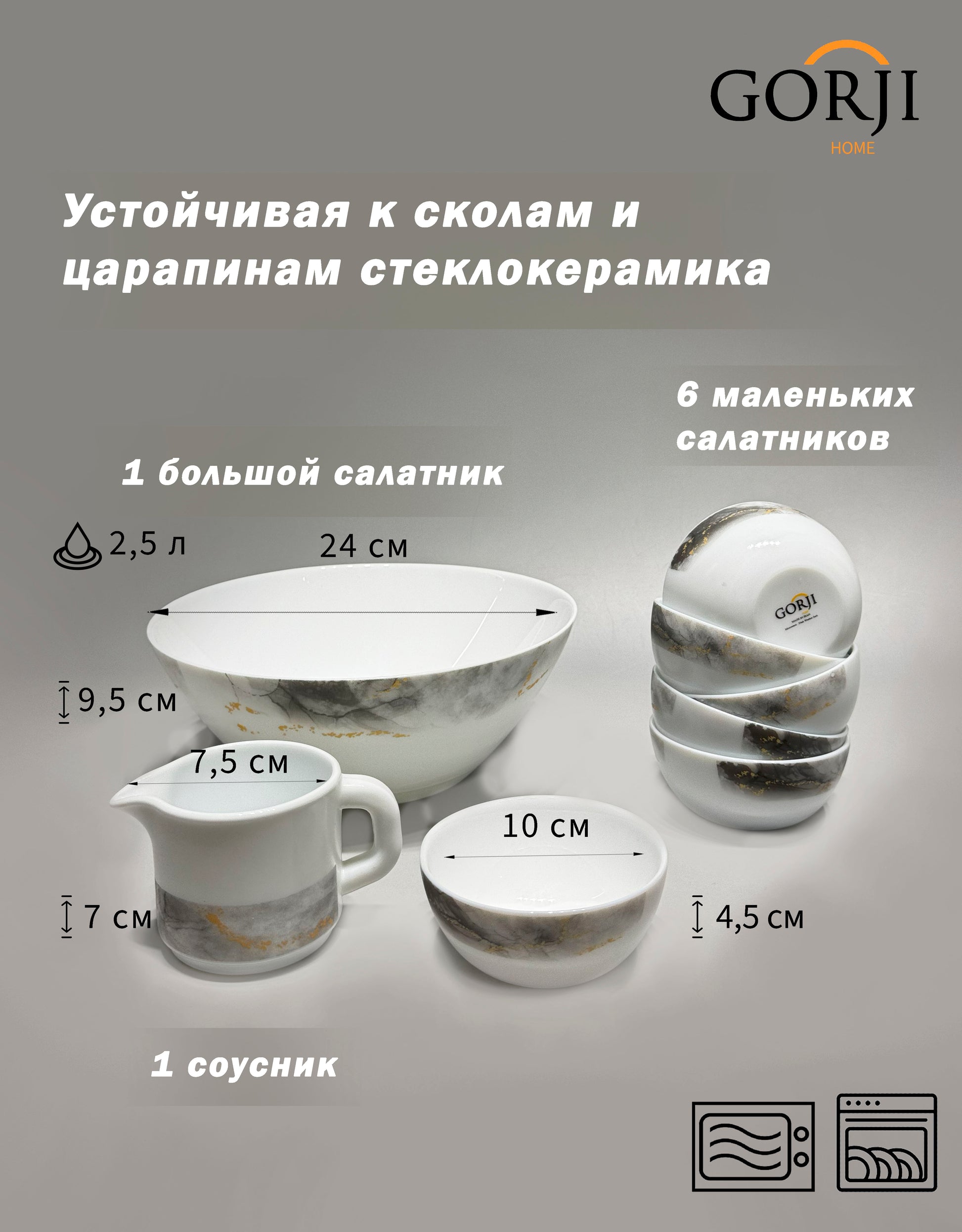 | Кішкентай салат ыдыстары | 10 см | 6 дана |