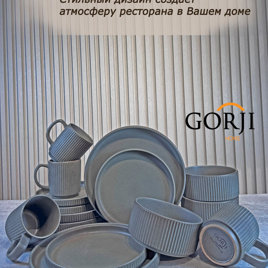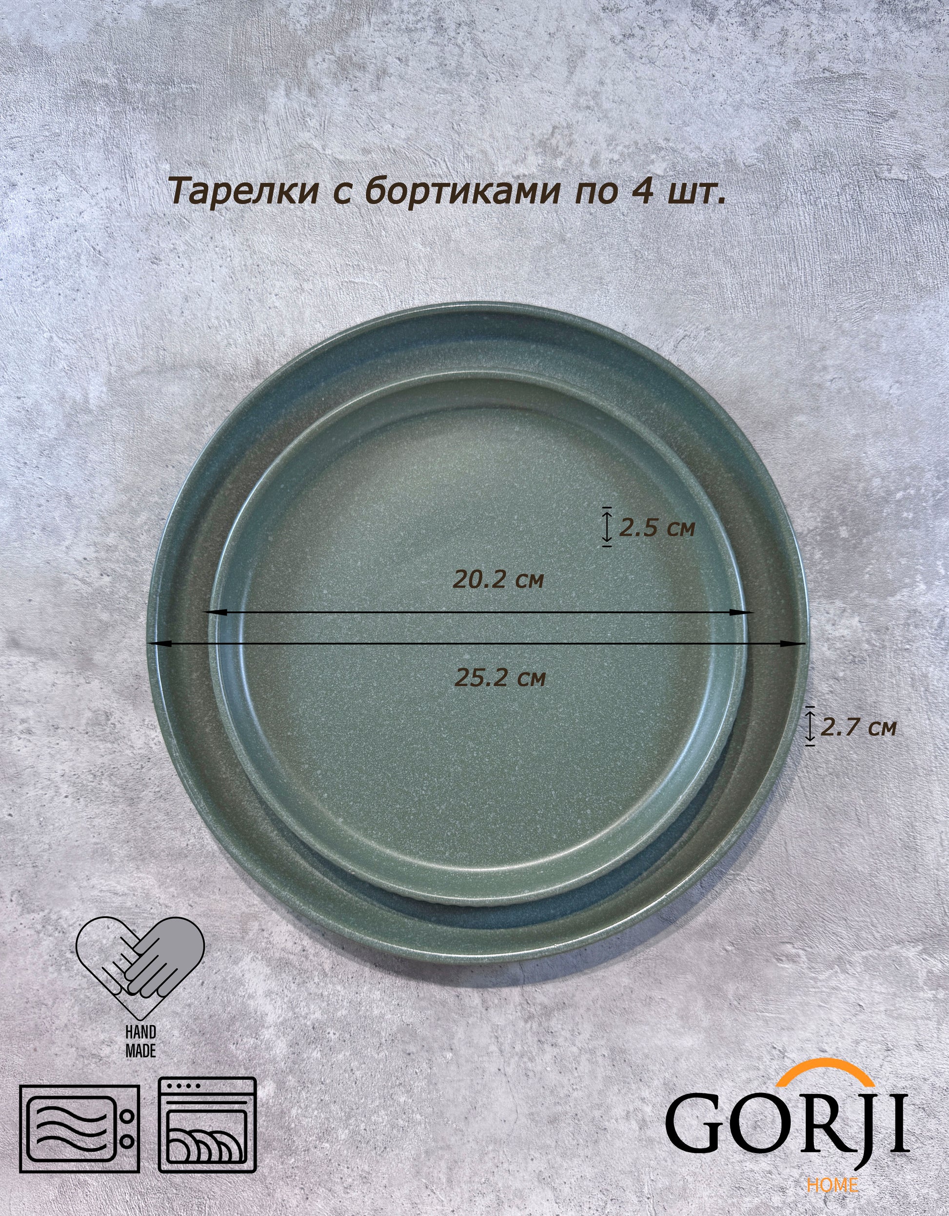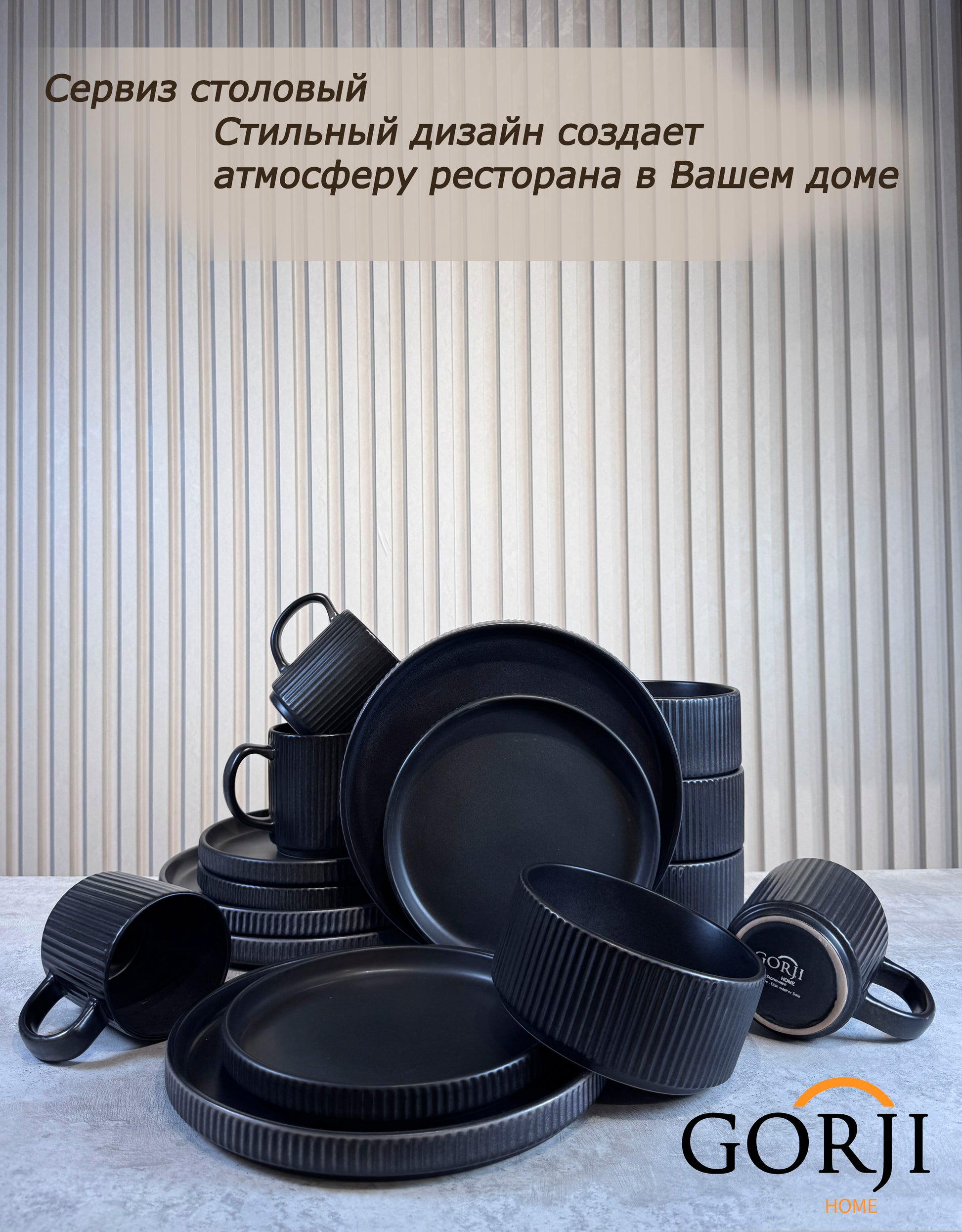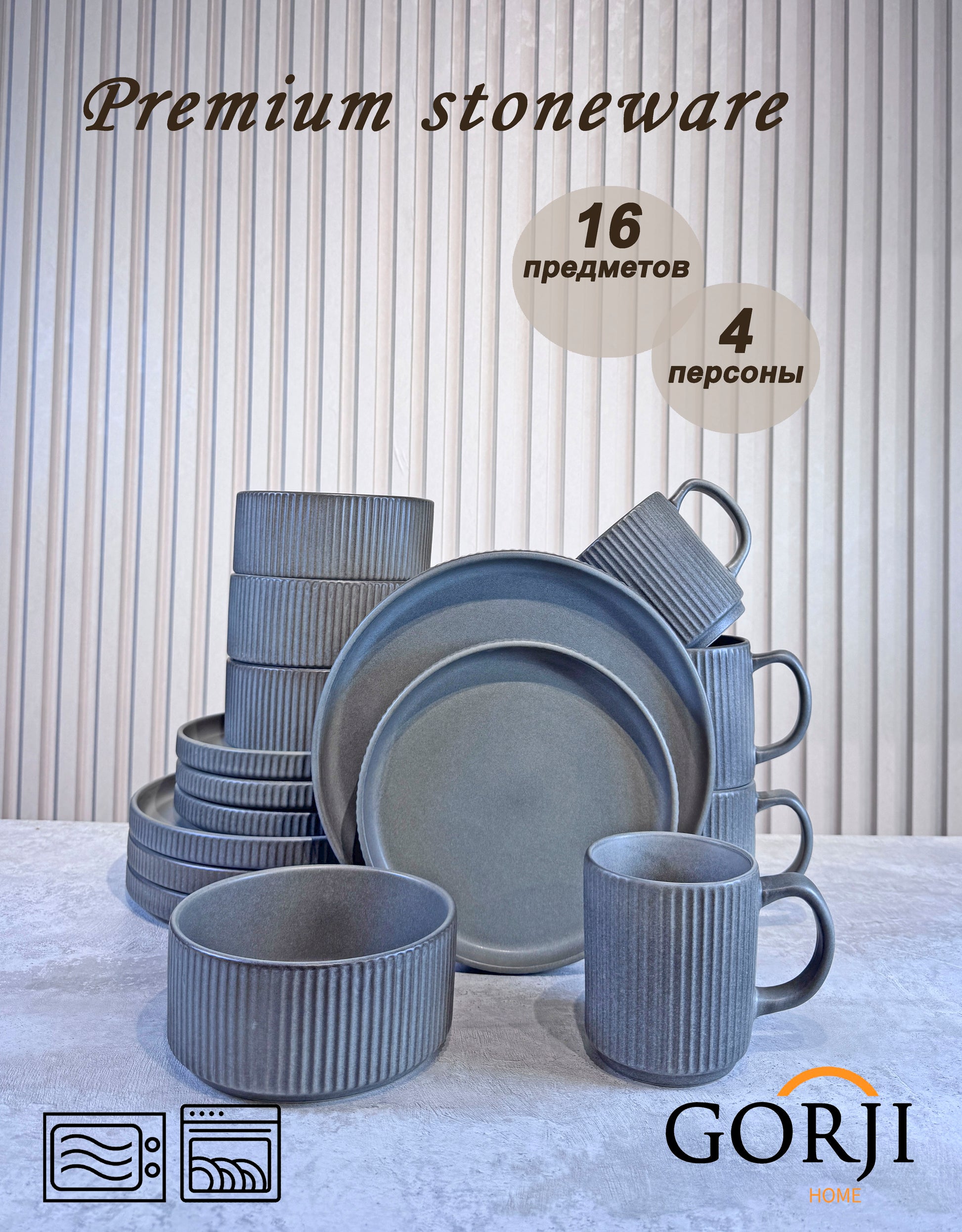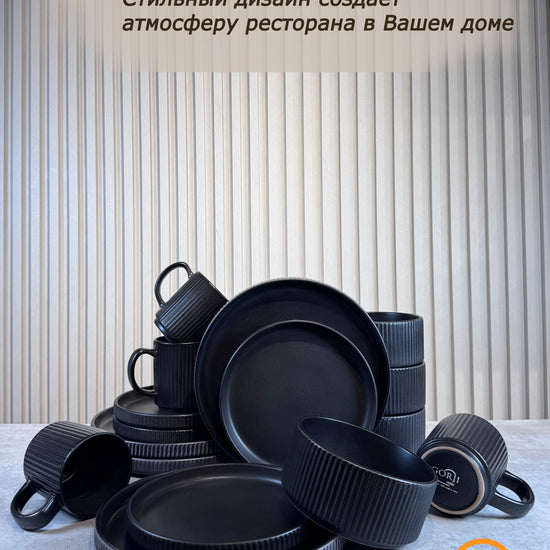 - 4 dinner plates 25.2 cm, 4 dessert plates 20.2 cm, 4 mugs 410 ml, 4 deep plates 15 cm.