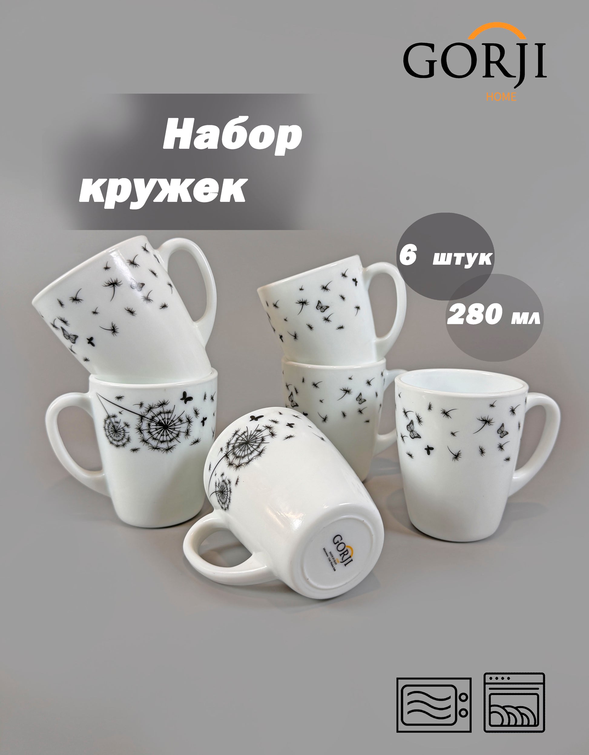 | Кружки | 280 мл | 8 см | 6 шт. |