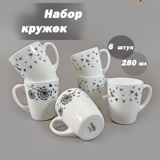 - Набор из 6 кружек, каждая емкостью 280 мл